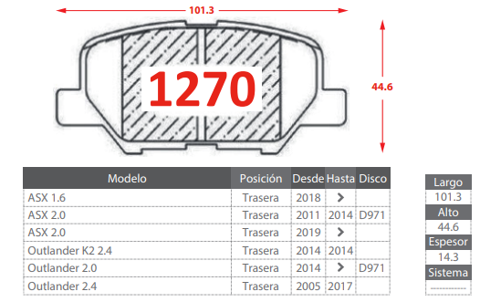 - PASTILLA DE FRENO TRASERAS MITSUBISHI ASX 1.6/ OUTLANDER 2.0 2.4/ CHANGAN CS35 1.4