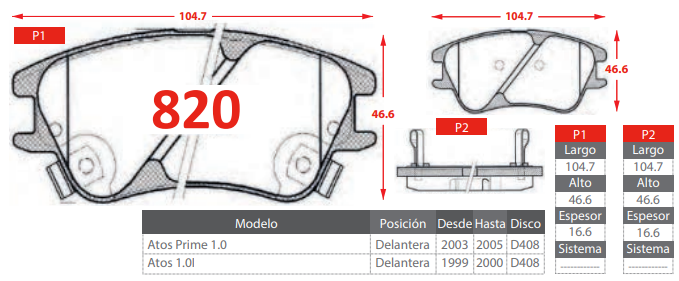 - PASTILLA DE FRENOS DELANTERA HYUNDAI ATOS PRIME 1.0/ ATOS 1.0I
