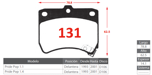 - PASTILLA DE FRENOS DELANTERA KIA PRIDE POP 1.1 1.4
