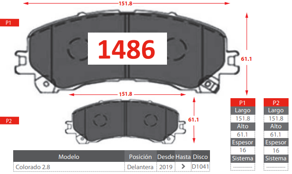 - PASTILLA DE FRENOS DELANTERAS CHEVROLET COLORADO 2.8