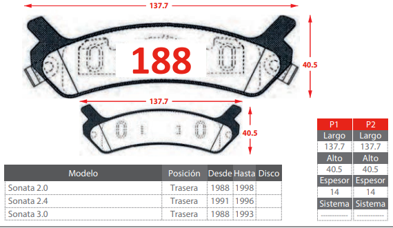 PASTILLA DE FRENOS TRASERAS HYUNDAI SONATA 2.0 2.4 3.0