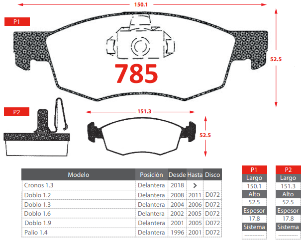 - PASTILLA DE FRENOS DELANTEROS FIAT CRONOS 1.3/ DOBLO 1.2 1.6 1.9/ PALIO 1.4