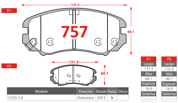 - PASTILLA DE FRENOS DELANTEROS HYUNDAI SONATA/TUCSON 04-10/ELANTRA 07-10/AZERA/ CHANGAN CS35 1.6/ LOTZE 2.0/MAGENTIS 2.0/ OPTIMA 2.0 2.7/ SOUL 1.6/ X7 1.8