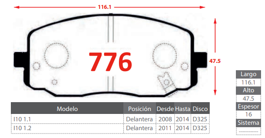 PASTILLA DE FRENOS DELANTEROS KIA MORNING 2005->/ HYUNDAI I10 1.1 1.2