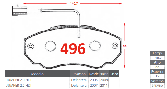 - PASTILLA DE FRENOS DELANTEROS PEUGEOT BOXER/ CITROEN JAMPER 2.0 2.2 HDI