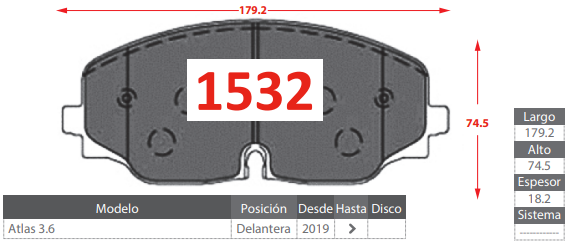 PASTILLA DE FRENOS DELANTEROS VOLKSWAGEN ATLAS 3.6
