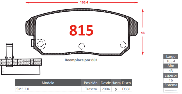 - PASTILLA DE FRENOS TRASERA SAMSUNG SM5 2.0
