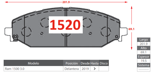 - PASTILLAS DE FRENOS DELANTERAS DODGE RAM 1500 3.0 DEL 2019