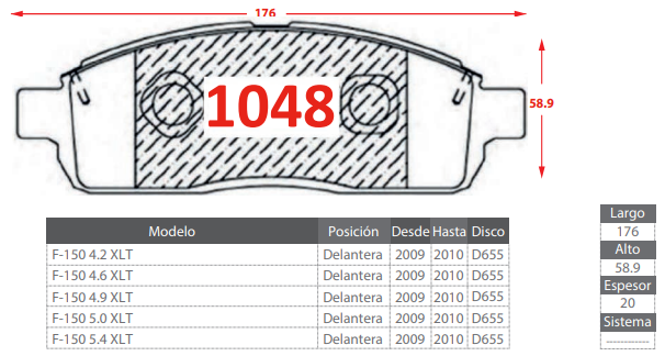 - PASTILLAS DE FRENOS DELANTERAS FORD F-150 XLT 4.2 4.6 4.9 5.0 5.4