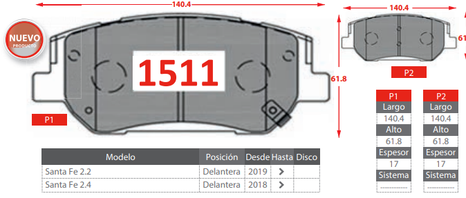 - PASTILLAS DE FRENOS DELANTERAS HYNDAI SANTA FE 2.2 2.4