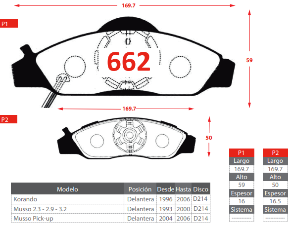 - PASTILLAS DE FRENOS DELANTERAS SSAMGYONG KORONADO/ MUSSO 2.3 2.9 3.2/ MUSSO PICK UP