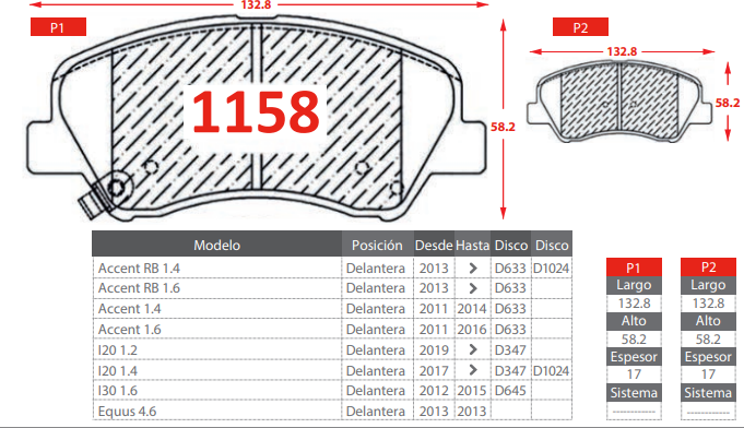 - PASTILLAS DE FRENOS DELANTEROS HYUNDAI ACCENT RB 1.4 1.6/ ACCENT 1.4 1.6 /KIA RIO V-IV/ELANTRA/VELOSTER/ I20 1.2 1.4 1.6/ EQUUS 4.6