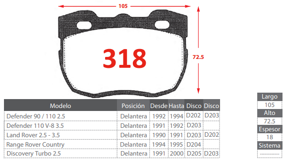 - PASTILLAS DE FRENOS DELANTEROS LAND ROVER DEFENDER 90 2.5/ DEFENDER 110 3.5/ LAND ROVER 2.5/ RANGE ROVER COUNTRY/ DISCOVERY TURBO 2.5