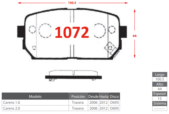 - PASTILLAS DE FRENOS TRASERAS KIA CARENS 1.6 2.0