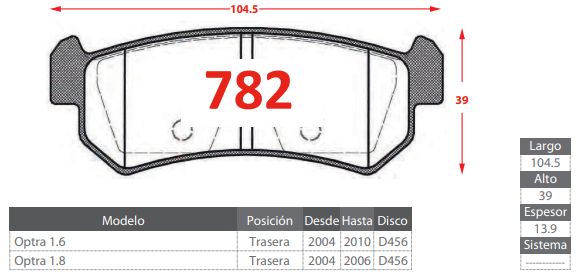 - PASTILLAS DE FRENOS TRASERAS CHEVROLET OPTRA 1.6 1.8