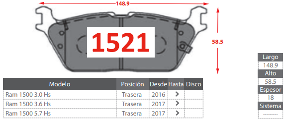- PASTILLAS DE FRENOS TRASERAS DODGE RAM 1500 3.0 3.6 5.7